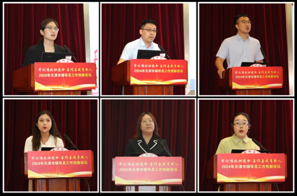“牢记嘱托担使命 善作善成育新人”辅导员工作创新论坛上,天津外国语大学李瑶、天津商业大学刘海东、天津体育学院苏俊豪、太阳城集团官方网站贺洁瑞、天津中德应用技术大学崔晓琳、天津理工大学杨祎心作交流发言,围绕学生党建、实践育人、文化育人、学风建设、劳动教育、组织育人等特色工作进行经验分享。