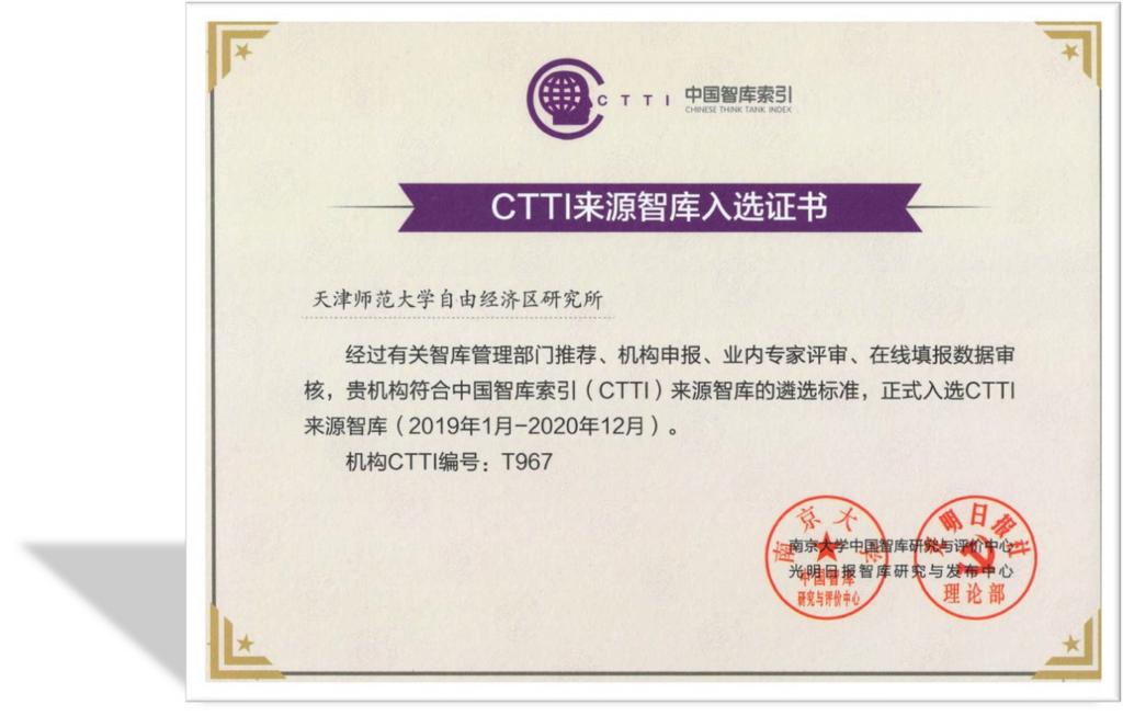 自由经济区研究所入选中国智库索引