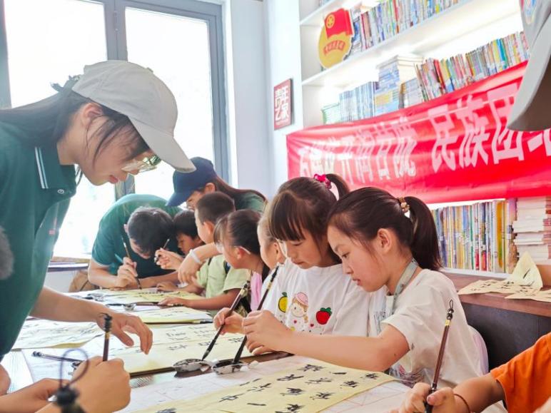 在云南省宣威市板桥街道龙津社区居委会,实践团成员借助普通话互动游戏,让孩子们在寓教于乐中领悟普通话的重要性,并通过一系列与普通话相关的书法体验、绘画创作、诗歌鉴赏等活动,带领孩子们在潜移默化中领略汉字的结构之美、普通话的韵律之美,体会中华文化的独特魅力,现场气氛热烈。