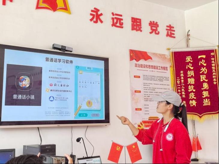 在深入了解村民学习普通话的途径及所面临的困难之后,团队成员精心为村民设计了多种学习方案:向群众讲解普通话学习软件的使用方法;帮助老年人关注了“普惠甘陇”微信公众号、视频号等平台;推荐“推普版《青花瓷》”“推小普带你学——每天一个历史文化小知识”栏目等,以便为当地村民提供更加便捷的普通话学习交流服务。