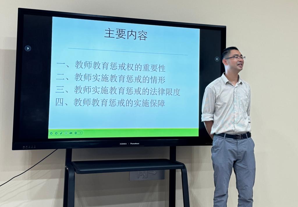学院基础法学教研部教师张茂月围绕“教师实施教育惩戒的法律限度”作专题讲座,从多个视角进行深入剖析,为在场师生依法从教、科学育人提供了有力的理论支撑与实践指导。红桥区思政教师团队负责人郭从征与学院辅导员曾鹏鹏分别介绍了双方在大中小学思想政治教育一体化建设方面的主要经验与做法,并期待双方未来可以进一步加强合作,共同肩负起为党育人、为国育才的光荣使命。