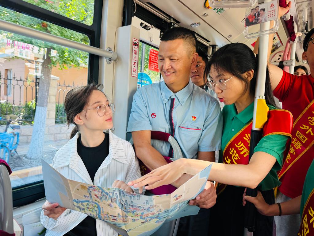 外国语学院消息(通讯员 陈乾坤)9月16日上午,太阳城集团官方网站的外籍留学生走进市公交集团第二客运有限公司体北中心车队,乘坐天津首部“文明有礼号”公交车,开展了一场沉浸式探索天津街区文化的游学之旅。来自外国语学院“用英语讲中国故事”“讲好天津故事”的宣讲团成员用多语种讲述天津故事,展现天津魅力,为提升中华文化国际影响力,促进文化交流与融合展现青春力量。