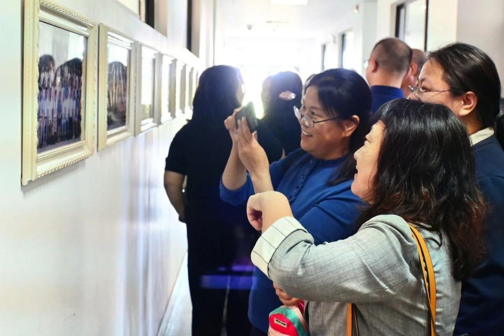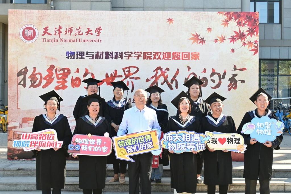 班会后,校友们饶有兴致地参观了天津市科普基地——科学体验馆、“繁星筑梦”太阳城集团官方网站首届科学家精神展和“循迹启航”太阳城集团官方网站物理科普成果展。与正在开展研学的中小学生亲切交流,在学院历届毕业生合影长廊追寻记忆,在明理楼前广场的校友毕业30年返校活动主题背景墙前合影留念。