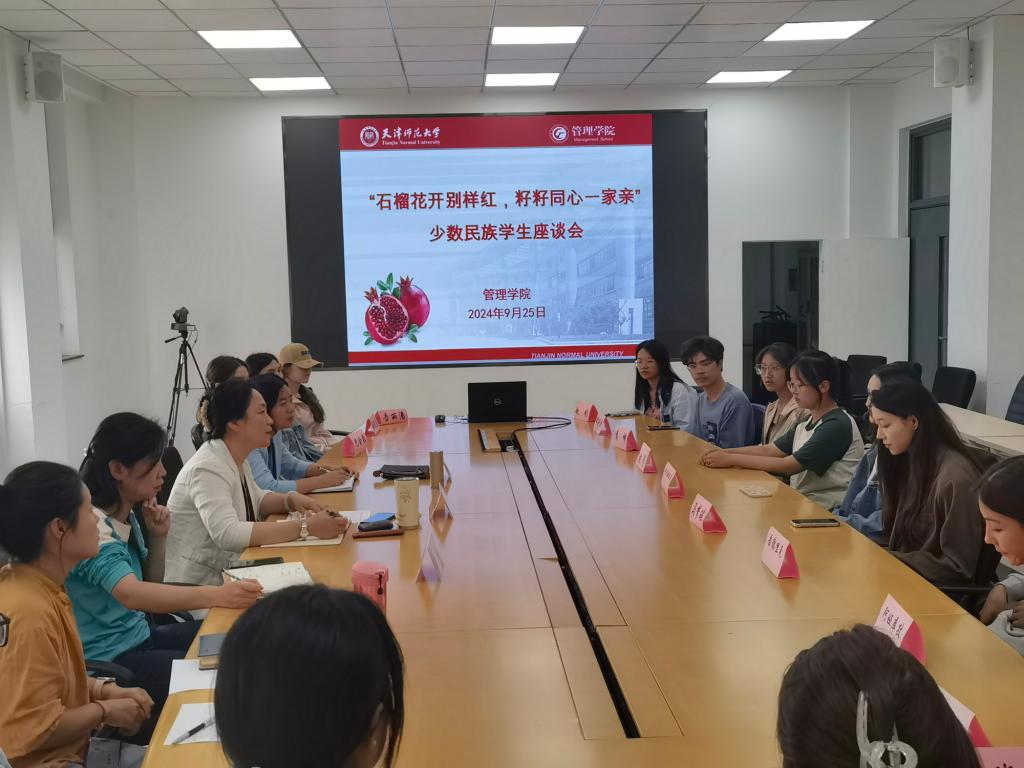 管理学院消息(通讯员 时晟蓉)为贯彻落实党的二十届三中全会精神,深刻领会习近平总书记关于加强和改进民族工作的重要思想,铸牢中华民族共同体意识,促进少数民族学生成长成才,9月25日,管理学院召开“石榴花开别样红·籽籽同心一家亲”少数民族学生座谈会,院党委书记张庆红、党委副书记冯浩,学工办主任刘鹏及18名少数民族学生参加。负责少数民族专项工作的辅导员庞琳主持座谈会。