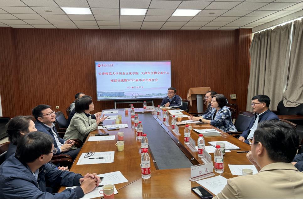 本站讯(通讯员 周二保)近日,历史文化学院与天津市文物交流中心举办座谈交流会暨2025届毕业生推介会。历史文化学院全体领导班子成员、天津市文物交流中心党总支书记兼主任王青及有关负责同志参加会议。