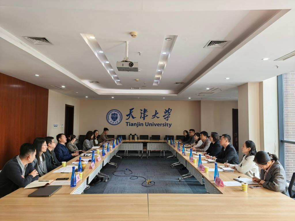 在与天津大学党委组织部交流座谈中,赵金铎结合实际工作介绍了天津大学组织工作的思路目标和方法举措,特别是对相关特色工作做了详尽解析。各科室同志就各项具体工作经验做法进行了分享。双方围绕党建项目培育、两项议事规则执行、年轻干部培养、干部考核和培训等方面问题,进行了深入探讨和交流,并就后续互派干部教师交流工作进行了沟通。双方表示希望今后以高质量党建为引领,密切合作,全面推动组织工作提质增效,助推两校事业高质量发展。