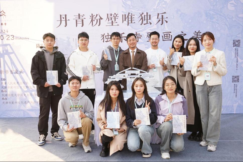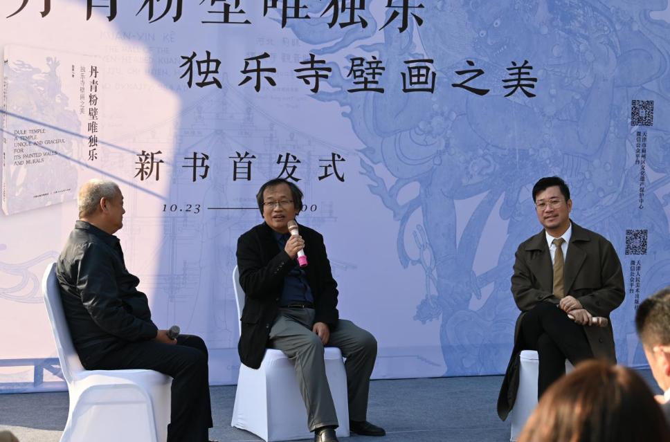本站讯(通讯员 周二保)近日,历史文化学院副教授陈晨新作《丹青粉壁唯独乐——独乐寺壁画之美》发布会在蓟州独乐寺内举行。此次活动由天津人民美术出版社、天津市蓟州区文化旅游局联合主办,天津市蓟州文化遗产保护中心承办,太阳城集团官方网站历史文化学院协办。天津出版传媒集团党委副书记、总经理苏坚,天津市蓟州区委常委、宣传部部长韩逸新,天津市蓟州区人民政府副区长朱静奇,天津市蓟州区区委宣传部常务副部长张学文,天津市蓟州区文化遗产保护中心书记、主任李燕,天津市蓟州区文化和旅游局原副局长蔡习军,新书作者、我院文物与博物馆学系副教授陈晨,天津人民美术出版社社长杨惠东等出席本次活动。