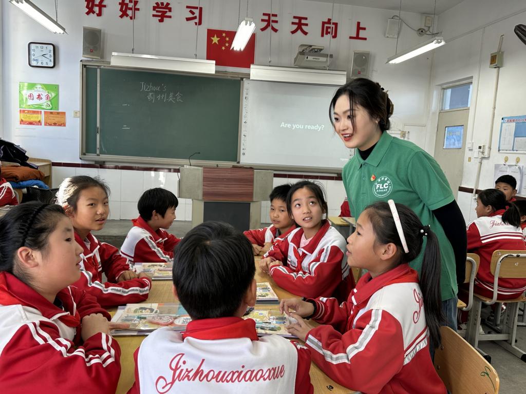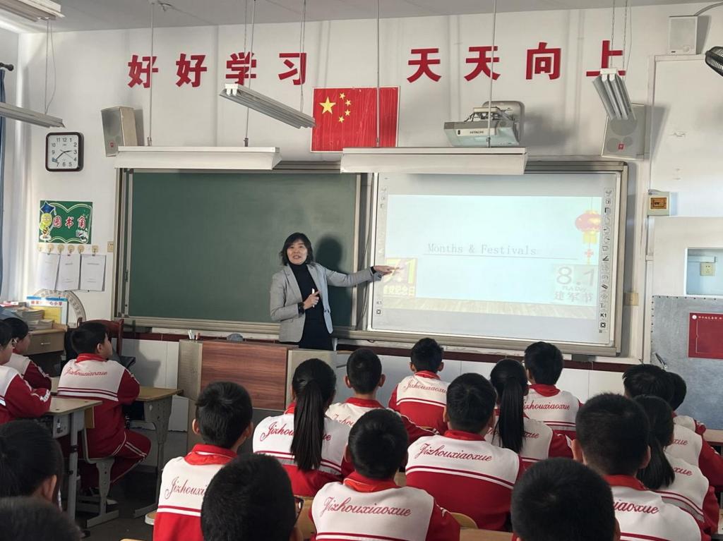 天津市高等学校教学名师、学院院长冀小婷走进杨家楼中心小学六年级课堂,带来一堂精彩的英语课程。学院“用英语讲中国故事”“讲好天津故事”宣讲团走进五年级教室,描绘出了一幅绚丽画卷,从古老的津门风貌到现代的都市繁华,从传统的民俗文化到现代的国际交流,带学生们感受天津和蓟州区的悠久历史和独特魅力。