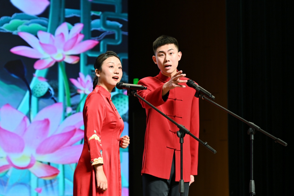 本场演出为“2024天津相声节”场次之一,观演师生纷纷表示,此次相声演出内容丰富,题材新颖,不仅生动地展示了相声艺术的魅力,同时也是一堂别开生面的高校学生思想教育大课堂,将相声与生活、文化相结合,紧跟时事,让博大精深的传统文化在欢声笑语中深入人心。