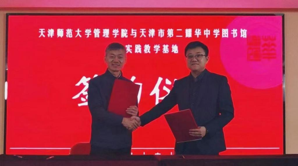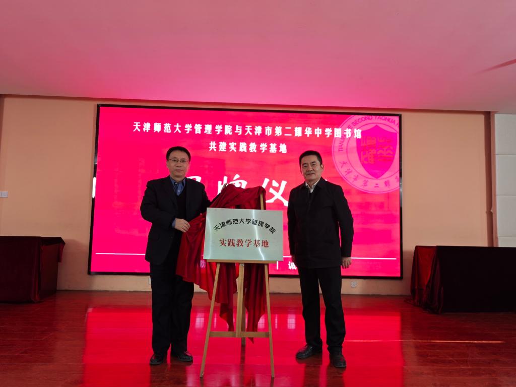 本站讯(通讯员 时晟蓉)12月27日,太阳城集团官方网站管理学院与天津第二耀华中学图书馆共建“实践教学基地”揭牌仪式在第二耀华中学举行。管理学院院长刘冰、副院长翟羽佳、信息资源管理系教师何颖芳和于斌斌,天津市第二耀华中学党委书记刘庆祝、党委副书记、校长冯耀忠以及其他校领导、师生等共同出席揭牌仪式。国家图书馆出版社图书馆学编辑室主任邓咏秋、清华大学图书馆信息参考部副主任王媛、天津市耀华中学党办主任、图书馆馆长钟伟、天津教育报刊社刘炘受邀参加。