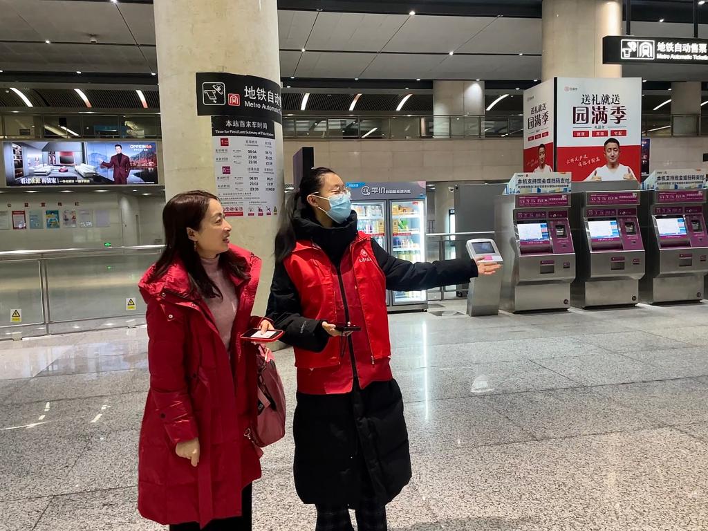 西站大厅内,身穿红马甲的志愿者们穿梭在人潮之中,投身到各项工作岗位,他们分布在进出站口、售票处、咨询台等6个服务点位。服务过程中,志愿者们主动“搭把手”,为来往旅客提供路线指引、票务协助、重点帮扶、秩序维护、咨询引导等服务,帮助其在春运期间安全出行、顺利返乡、温暖过节。