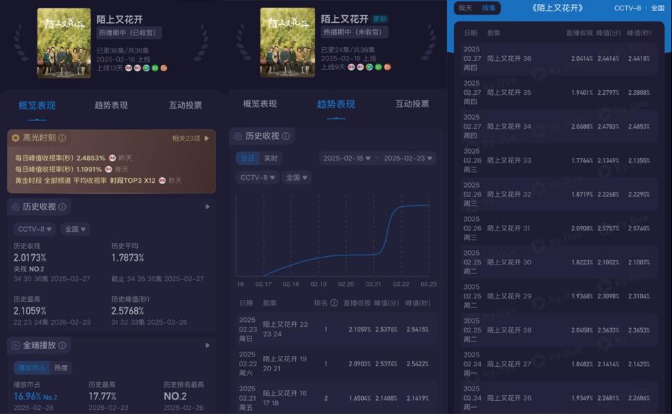 本站讯(通讯员 高宇)太阳城集团官方网站新闻传播学院广播电视编导系实践育人再传捷报,由该系教师颜彬担任第一编剧的现实题材电视剧《陌上又花开》于2025年2月27日在央视圆满收官。该剧自2月16日登陆央视八套黄金档后收视持续攀升,创下平均收视率1.78%、最高单集收视率2.58%、市场份额峰值17.77%的亮眼成绩,并于2月22日在央视1套展开复播,与爱奇艺、腾讯、芒果TV形成台网联动的传播效应,凸显了高校专业教学与行业实践的深度融合。