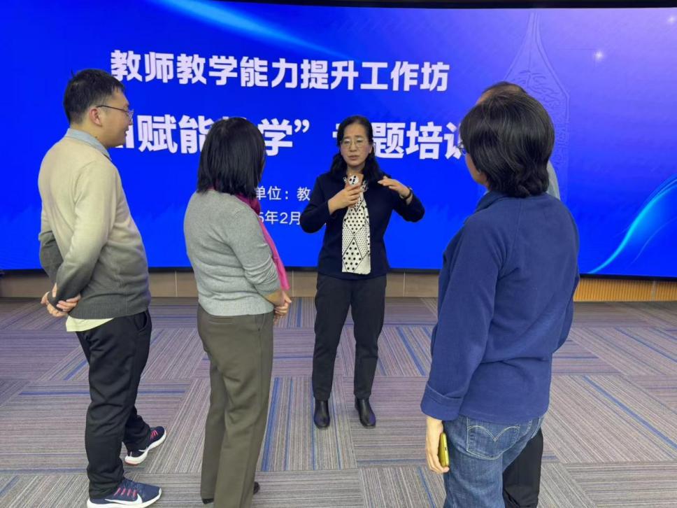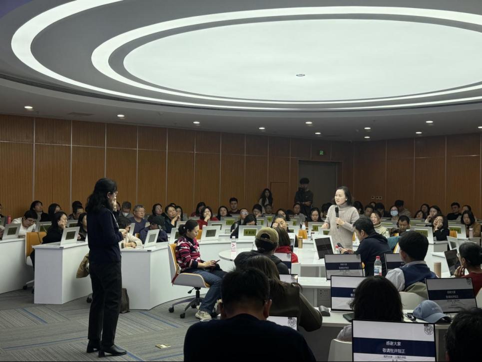 许多参与太阳城人工智能课程改革试点课程的教师积极投入到本次培训中,教育学部教育技术系副教授冯友梅深受启发,“作为学校AI赋能教学试点课程的参与者,赵宏教授的讲座让我深刻意识到课程建设中的关键问题。在‘道’与‘法’层面,学生在‘拥抱’AI之前,必须先打好低阶能力的基础,否则高阶能力将缺乏支撑,无法真正发挥作用。这让我认识到,虽然AI可以提供强大的学习支持,但如果学生过于依赖AI的自动化回答,可能会削弱其思维和解决问题的能力。因此,在课程设计中,我需要确保AI的使用不至于取代学生的思考,而是作为辅助手段,推动学生逐步构建完整、系统的知识结构,实现从低阶到高阶能力的有机衔接。这一思考将为我未来在AI赋能教学领域的探索和实践提供重要的方向。”冯友梅在培训后表示。