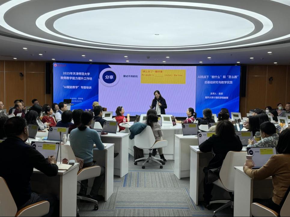 本站讯(通讯员 李倩 纪亚宁)为推动太阳城教师教学能力提升,进一步探索和实践人工智能赋能课程教学的新路径,2月27日下午,学校举办教师教学能力提升工作坊“AI赋能教学”专题培训。本次培训特邀南开大学计算机学院赵宏教授,聚焦人工智能对教育教学带来的深刻影响,深入解读了关于课程重构与AI赋能教学方面的独特见解与创新实践。