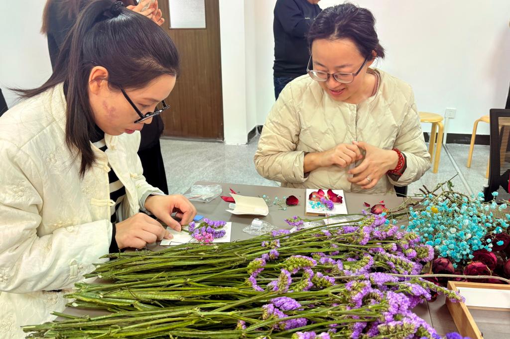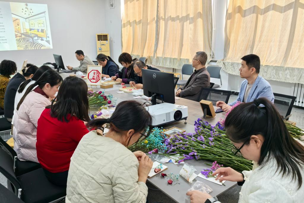 学院领导班子与女教师代表一同参与到“纸浆画”“干花画”的制作中,一派热火朝天的景象。活动现场老师们以永生花为材,松枝为骨,在素色画框中精心构图,将“廉洁”主题融入自然之美;以镊子沾染朱红纸浆轻轻点缀,鲜红明亮的“清廉”“廉政”跃然纸上,为打造风清气正的校园环境注入了“她力量”。莲花、翠竹等廉洁元素代表着高风亮节,刚正不阿,既深入人心又富含警示意味,寓意全体领导干部及教职工人员要坚守着为党育人,为国育才的初心。