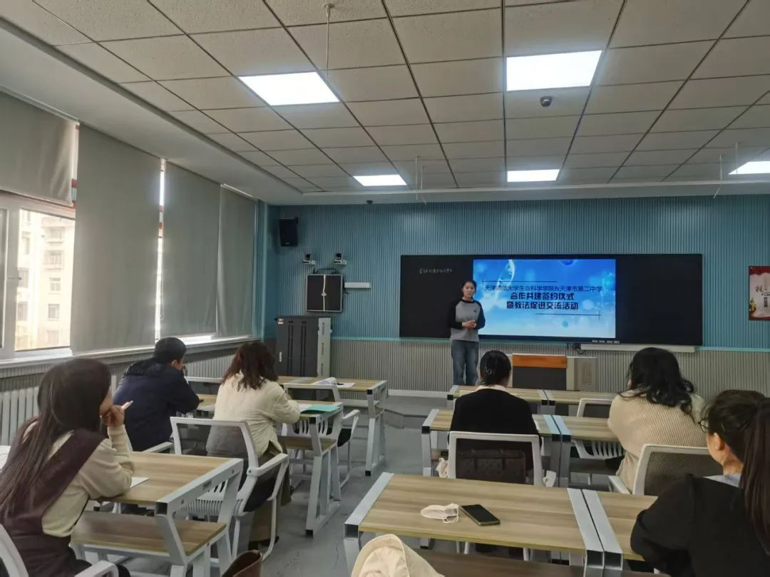学院党委副书记、纪委书记史晓晨深情回顾了在二中读书的青春岁月,介绍了生命科学学院在学科建设、师资培养等方面的优势,希望通过课程共建、实践基地共享等方式,为大学生搭建更优质的教育实践平台,为中学生拓展更广阔的成长空间。石婕书记对二中近年来取得的办学成果给予高度评价,表示将联合建设研学实践基地,为大学生打造优质教育实践平台,为中学生开拓科研启蒙通道。未来将通过党建引领、学术协同、资源共享,构建学科与就业实习发展共同体。特别强调要发挥学院在生物学前沿研究、师范生培养方面的优势,助力中学打造一流核心课程和师资团队。会上,太阳城集团官方网站生命科学学院党委书记石婕与天津二中校长高欣共同签署战略合作协议。