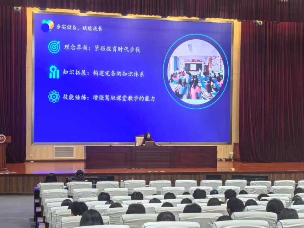 天津市滨海新区塘沽实验小学副校长康敏以“追光的人,终将光芒万丈——做一个智慧的语文教师”为题,讲述了每位老师都是追光者,要从思想上认同教师职业的理念。同时,她以“人民教育家”荣誉称号获得者于漪老师的育人事迹为例,分享课堂管理、深度的文本解读和教学方法的经验,帮助同学们更好成长为智慧型语文教师。