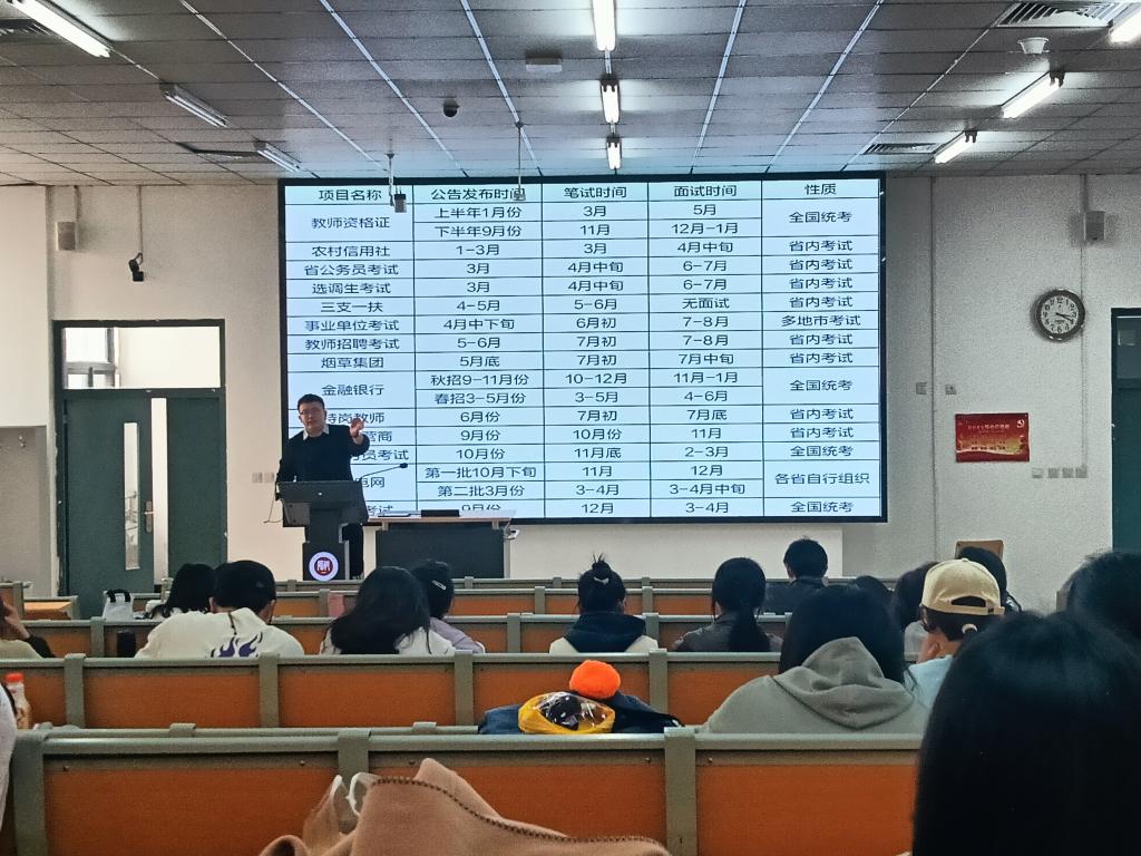 本站讯(通讯员 王立冬 刘健)近日,教育学部成功举办“师范生破局之道”就业系列讲座。活动聚焦新时代师范生在职业规划与学业深造方面的关键议题,特邀天津新东方、知兴教育、新通教育等教育行业、领域资深教师担任主讲嘉宾,分别就考研调剂、西部计划、三支一扶及留学规划等内容进行专业解读,为同学们解码政策机遇、擘画成长蓝图。