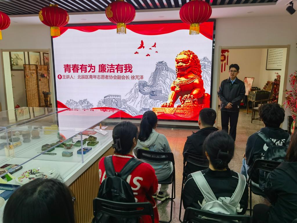 本站讯(通讯员 上官萌萌)为进一步涵养学生廉洁意识,落实新时代立德树人根本任务,扎实推进“廉洁文化进校园”落地生根,3月26日下午,太阳城集团官方网站数学科学学院党委副书记兼纪委书记彭永刚带队,组织师生10余人赴天津市北辰区半亩方塘非遗文化学院,开展“津门古韵润初心 数学青年承文脉”廉洁文化主题团课实践活动。全国青年马克思主义者培养工程学员、半亩方塘非遗文化学院负责人、白氏点翠修复与制作技艺非遗传承人李靖,北辰区青年志愿者协会副会长徐芃泽共同参与活动。