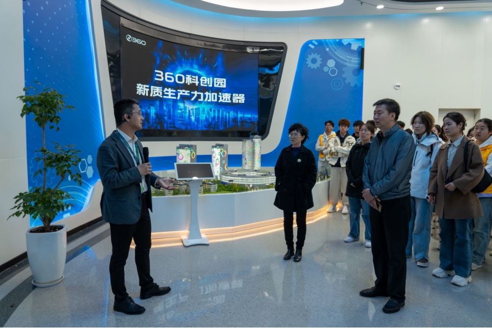 在360集团天津总部展厅,师生们在程海波的带领下,参观大模型技术实验室、国家大数据靶场、车联网、网络空间测绘中心等多个展厅和实验室。深入了解360公司在网络安全领域的前沿技术、创新成果以及业务模式。程海波谈道,安全是科技发展的基石,网络安全与国家安全和个人安全息息相关。参观最后,同学们驻足在360集团创始人周鸿祎的数字人屏幕前,体验与周鸿祎的数字人互动,同学们向数字人提出了关于如何做好人工智能科普和如何学好人工智能技术等问题,都得到了细致精准、内容丰富的解答。