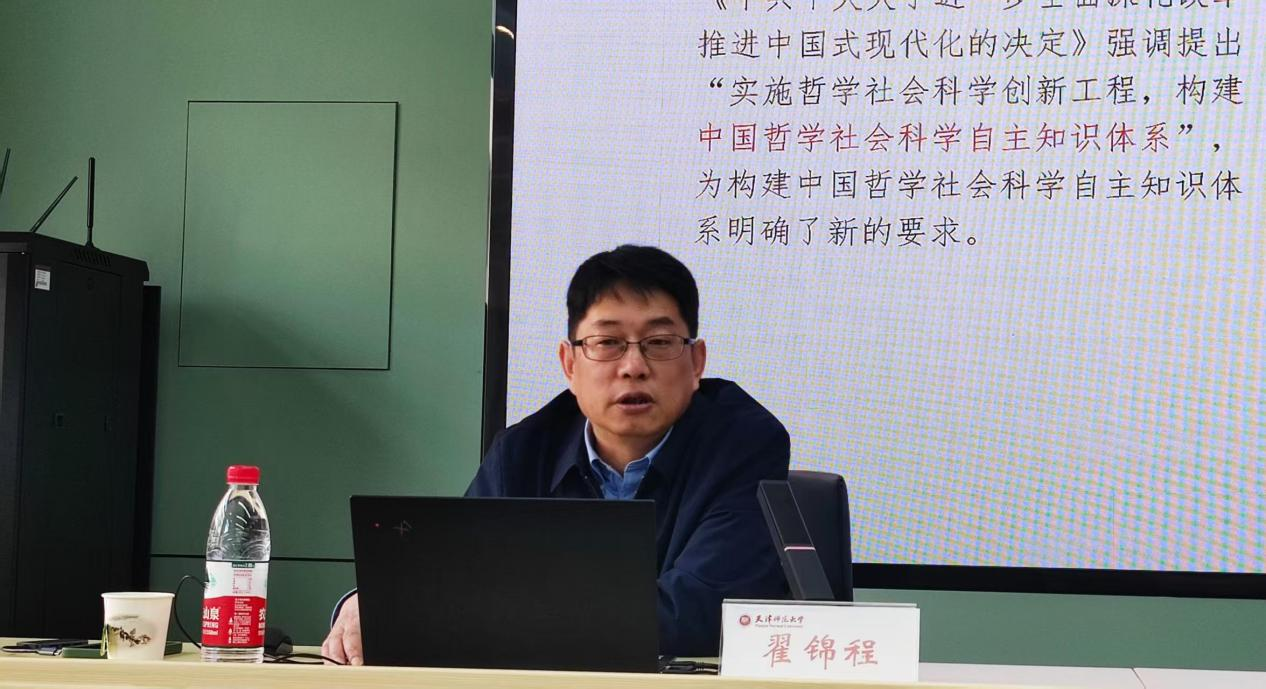 本站讯(通讯员朱立明)为深入贯彻落实党的二十届三中全会关于“构建中国哲学社会科学自主知识体系”的战略部署,推动哲学社会科学研究扎根中国实践、彰显文化主体性,社会科学处于4月3日举办首期从游学术讲堂。南开大学翟锦程教授应邀作“中国自主知识体系构建的文化基础”专题学术报告,吸引全校百余名师生共同参与。