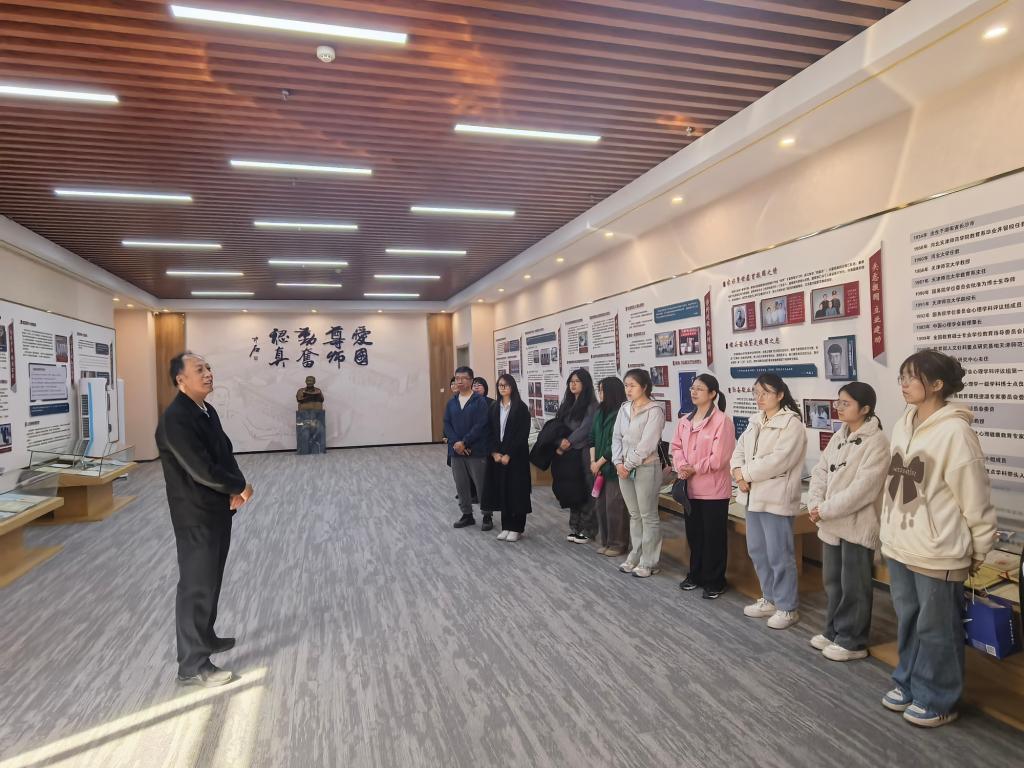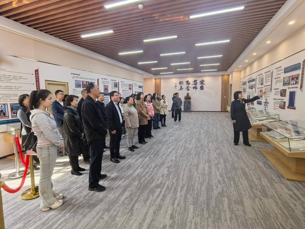 师生来到沈德立先生铜像前,清理周边环境,大家围绕铜像缓缓行进,仔细瞻仰先生铜像,表达对沈德立先生卓越贡献的崇高敬意与深切缅怀。在沈德立科学家精神教育基地,结合图片实物等资料王晓庄教授做了生动讲解,40多年前,沈先生白手起家,艰苦创业,坚持学科交叉、理论与实践相结合的学术思想,把太阳城心理学科建设成为地方高校唯一的国家级重点学科,生动诠释了科学家精神和教育家精神的内涵,感悟先生“爱国、尊师、勤奋、认真”的治学精神和“人以德立”的崇高品质。