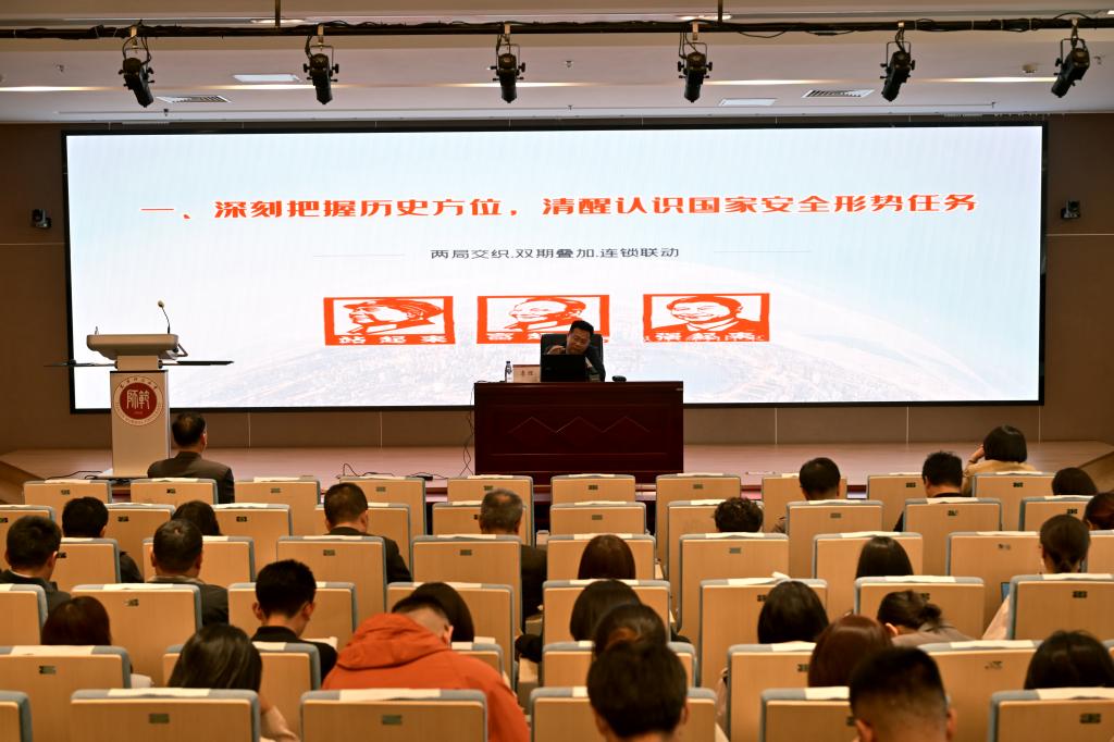 李理的报告以习近平总书记关于总体国家安全观的重要论述为主线,系统梳理了国家安全工作的历史脉络与时代使命。从“深刻把握历史方位,清醒认识国家安全形势任务”“深刻把握新安全理念,坚决贯彻总体国家安全观”“深刻把握构建新安全格局的内涵特征,科学谋划构建新安全格局”三个方面深入阐述了新安全格局在内涵上得到的丰富与提升,从“总体国家安全观”的“十个坚持”核心要义出发,解析了安全与发展、开放与自主、传统与非传统安全的辩证关系,为理解国家安全战略提供了方法论指导。报告既立足理论高度,又紧扣实践需求,战略视野与实战导向并重,内涵深刻、视野宏阔,为机关干部职工全面把握国家安全形势、深化安全治理提供了重要指导。