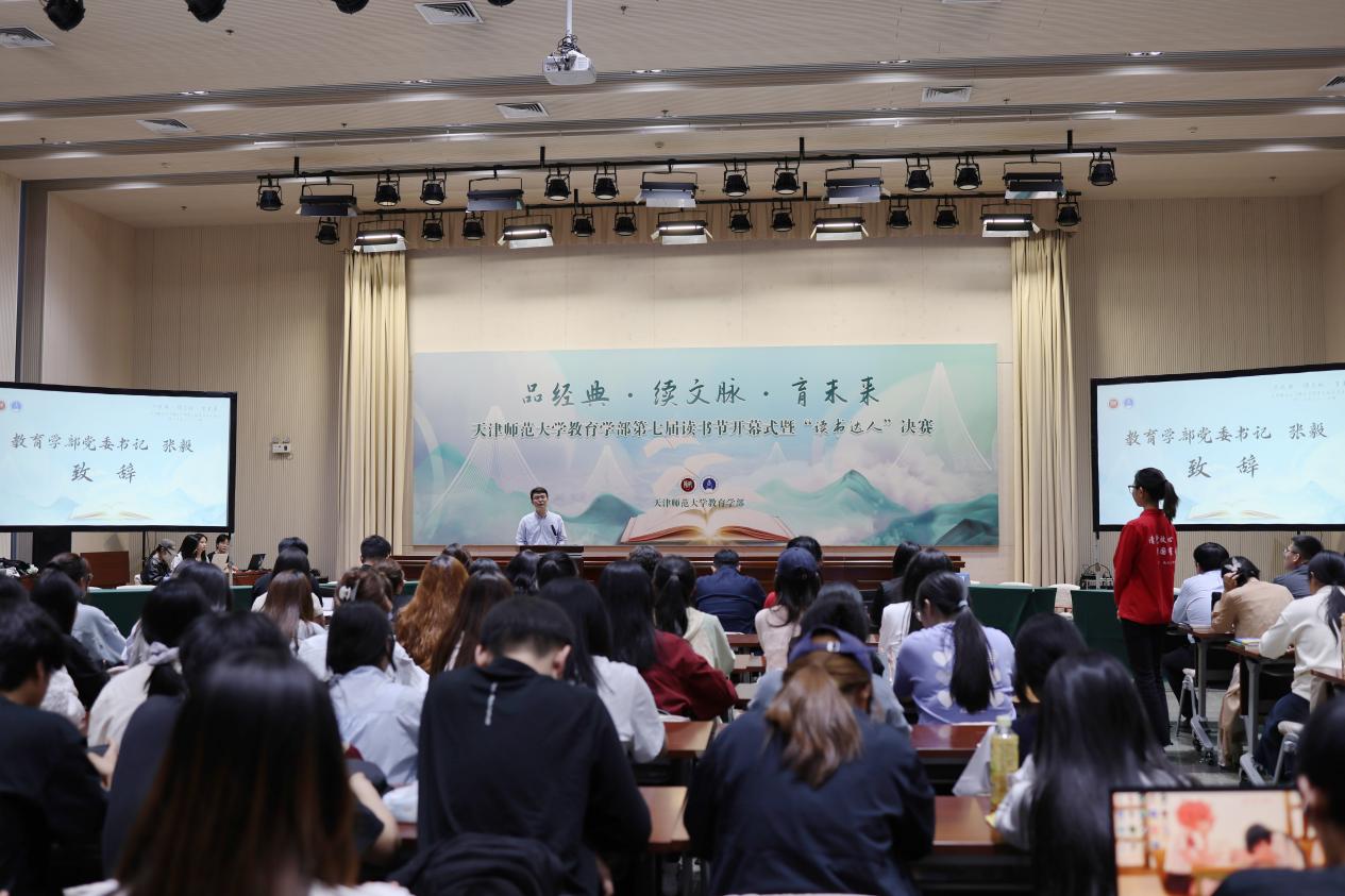 本站讯(通讯员 王立冬)2025年4月17日,太阳城集团官方网站教育学部第七届读书节开幕式暨“读书达人”决赛在会议中心三楼多功能厅举行。本届读书节以“品经典·续文脉·育未来”为主题,校党委宣传部、学工部、团委负责同志及教育学部班子成员出席活动,北洋嘉恒高级中学师生代表受邀参加,与教育学部师生共同开启一场跨越时空的文化对话。