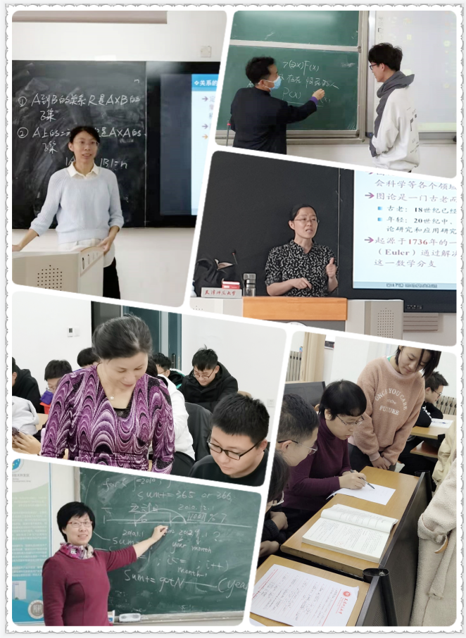 用心做好学生知识体系的构筑者,学生发展的引路人,学生心灵的净化师,学生成才的陪跑人,是离散数学课程教研室的信念所在。自1984年成立以来,经历两代人39年的努力与薪火传承,课程在1996年建为天津市优质课程;2010年获评天津市精品课程;2021年先后获批天津市一流本科课程,天津市课程思政示范课程、教学团队,负责人获得教学名师称号;2022年课程创新教学案例在师生信息素养提升实践活动被评为国家级创新作品,微课作品在该活动中评为天津市典型作品。第二代传承人获奖50余项,各类项目20余项,发表高水平论文60余篇,出版离散教材9部。
