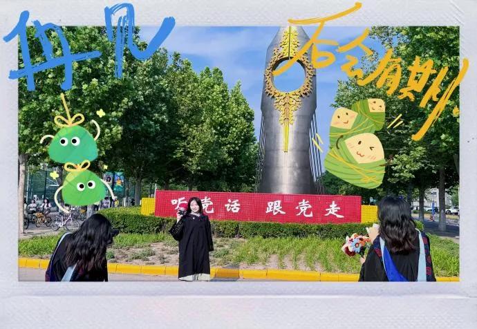 这个端午,对于一部分TNUer而言,交织着别样的情愫。粽叶的清香,也伴着“告别”与“启程”。他们,即将告别自己四年甚至更久的师大求学岁月,奔向人生的下一段航程。明理楼前银杏林的婆娑树影,曾见证他们来去匆匆的身影;秋水湖的粼粼波光,曾倒映过他们青春的欢笑。在这个蕴含“传承”与“纪念”之意的节日里,他们身着学士服,于钢笔尖雕塑前,定格下青春一页。流苏轻移的瞬间,快门按下的刹那,青春力量与古老祈福的共振,留下他们同窗共度的情谊与对师大的深深眷恋。这些散落在师大角落的端午光影,这些以粽香为引、以艾草为记的青春碎片,被同窗情密密串联,在岁月的长河里沉淀、发酵,最终酿成带着浓郁糯米香气的永恒纪念。