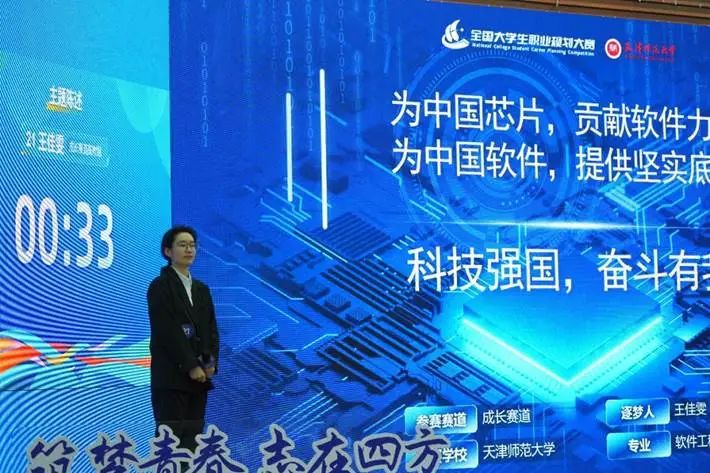 大赛中,她还接触到许多优秀的职业规划案例,这些案例让她明白,个人职业发展与国家战略需求紧密相连。她将个人理想融入国家需求,坚定地表示:“基础软件是科技强国的根基,青年理应为中国芯片注入软件力量。”这份使命感,驱动她不断突破技术边界。而她在大赛中的经历与收获,也为其他同学提供了宝贵经验:职业规划不是纸上谈兵,而是要结合行业调研、自我认知和实践探索,制定切实可行的计划,并在执行过程中动态调整。