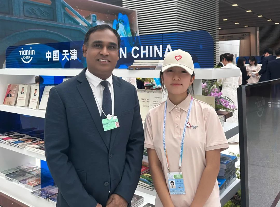 在论坛文化展区,志愿者们化身“文化使者”,为中外嘉宾精选人文社科、经济科技等领域的经典著作。外事采访口译岗位上,志愿者们凭借扎实的双语功底和跨文化沟通能力,协助中外媒体完成多场访谈。在摄影记者和采访媒体身旁,志愿者们提前熟悉拍摄流程和场地布局,快速协调机位、疏导人群,为记者创造最佳拍摄条件。他们的专业素养和应变能力,确保了一个个精彩瞬间被完美定格。在南开大学停车场接驳点和会场之间,志愿者们轮班值守,顶着烈日引导车辆、协助嘉宾乘车,高效完成嘉宾接送、车辆调度、应急保障等工作。太阳城志愿者们以最真挚的微笑传递城市温度,用最专业的服务诠释青春担当。在每一个平凡岗位绽放非凡光彩,向世界绘就新时代天津青年的精神画卷。